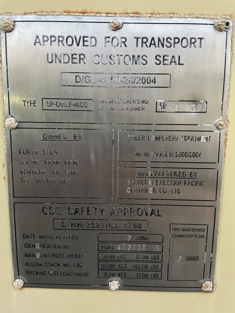 PORU402016 – “Ex Rental” 40’ Std Double Door Available for Purchase